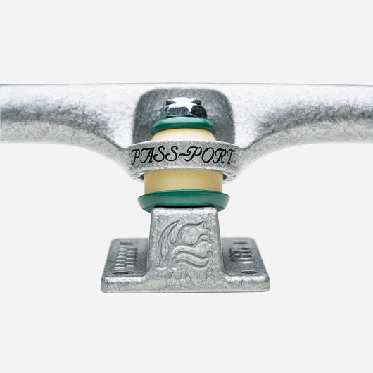 Ace x Passport Special Edition truck, specially crafted in conjunction with shared team riders. Includes special Hammertone print and collab embellishments produced in limited quantity.